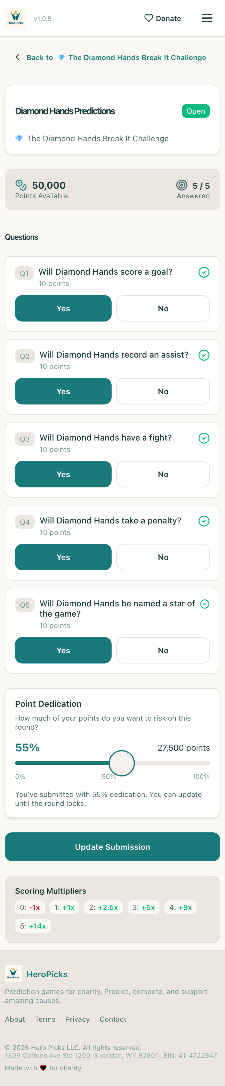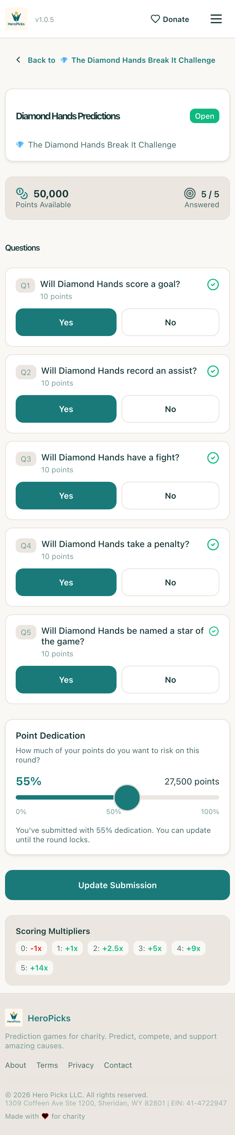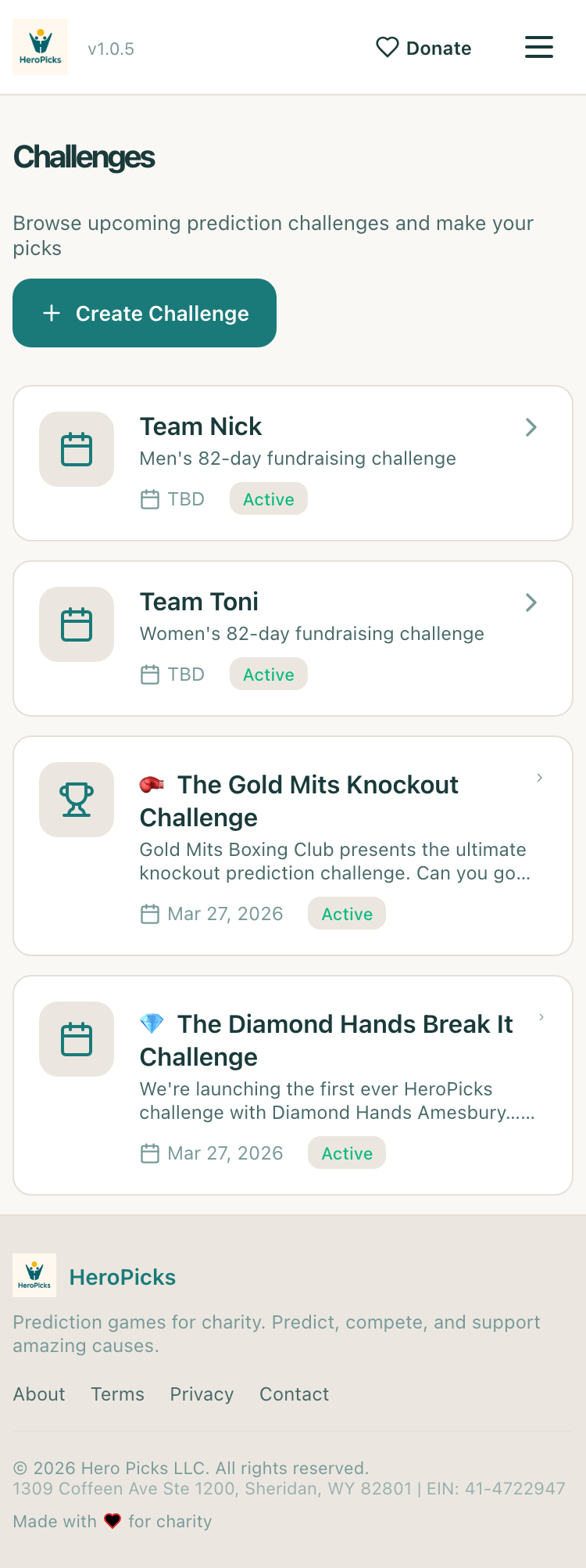 ✓User can view Diamond Hands challenge detailprizes + charities visible