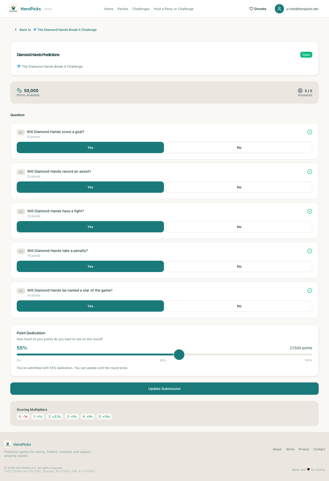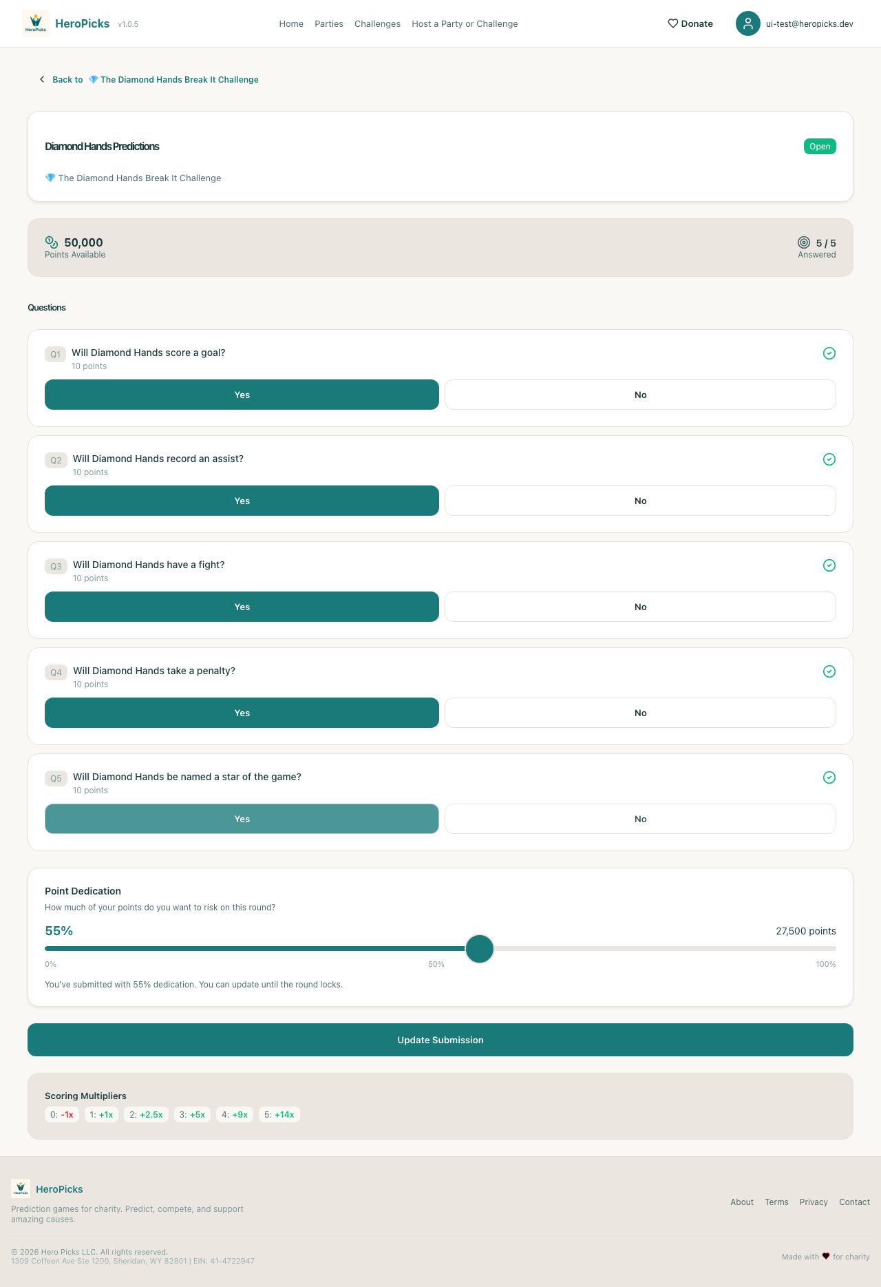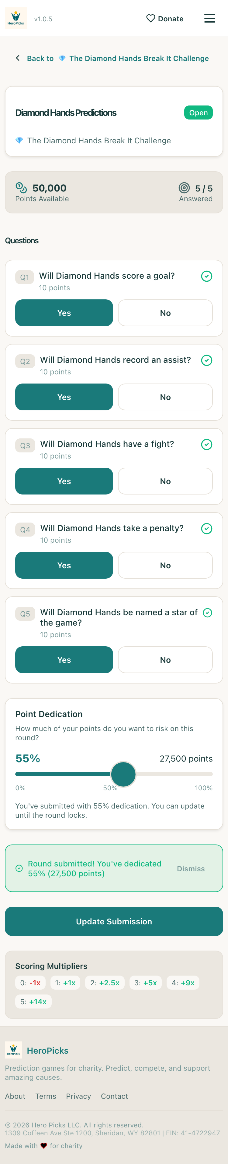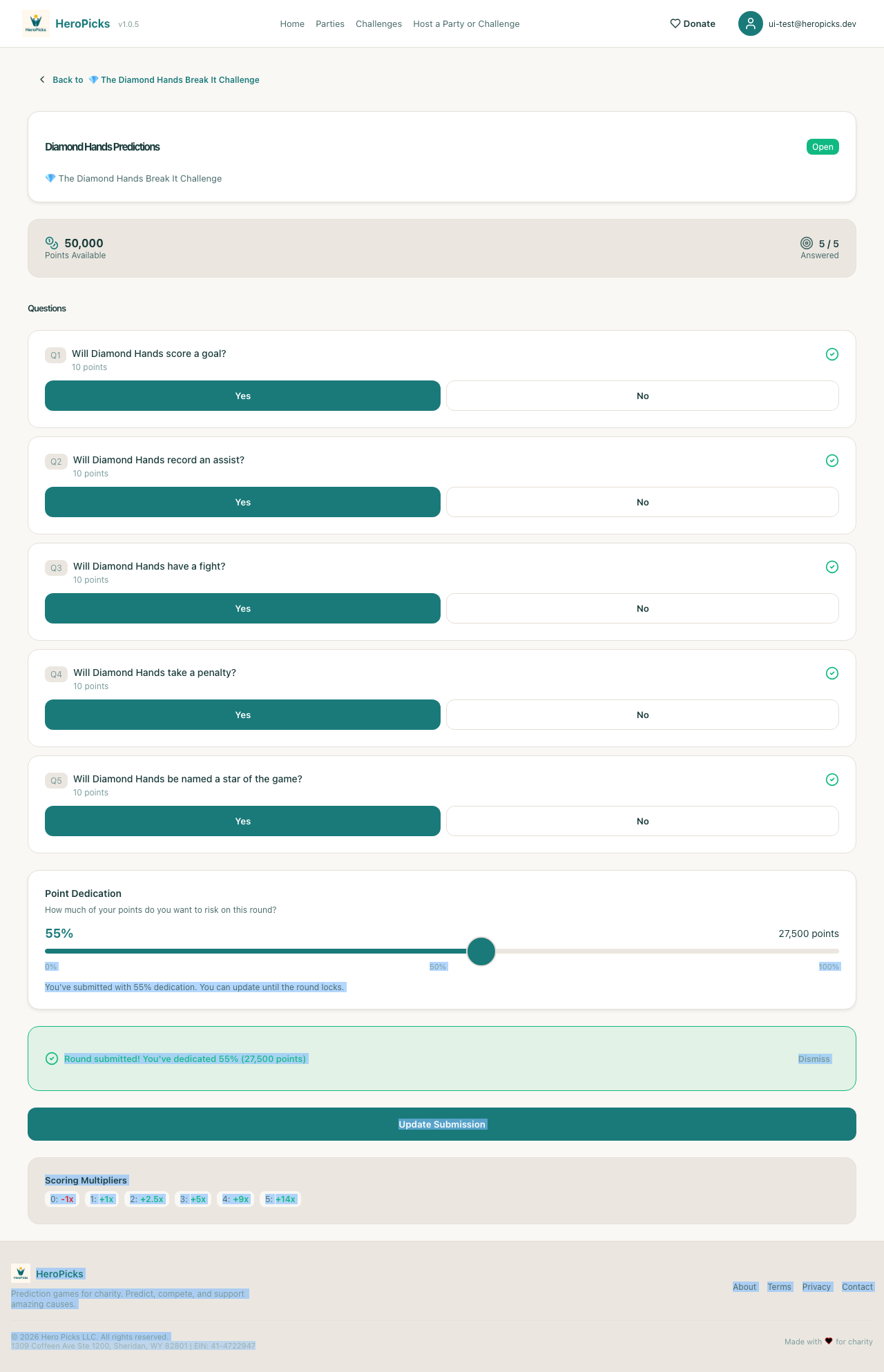 ✓User can submit the roundUpdate Submission → confirmed