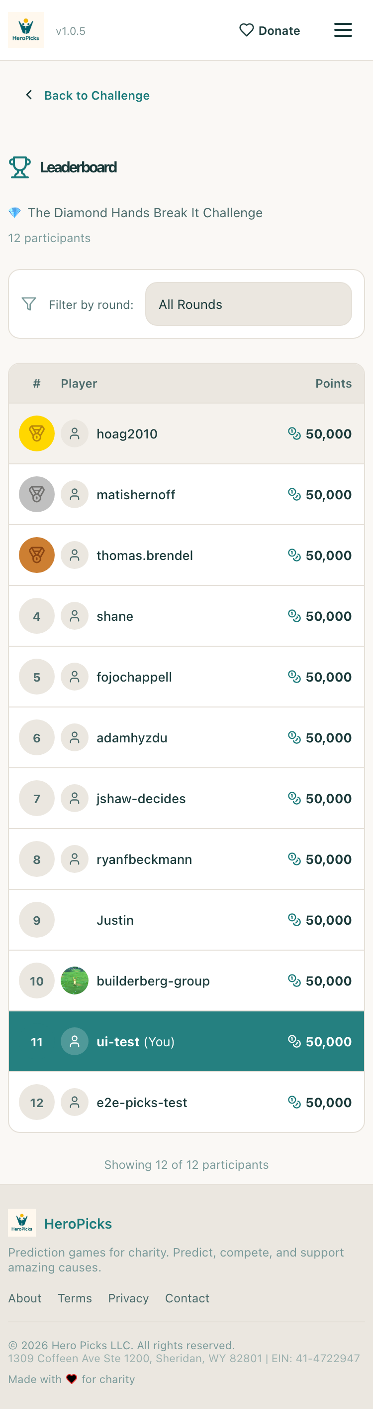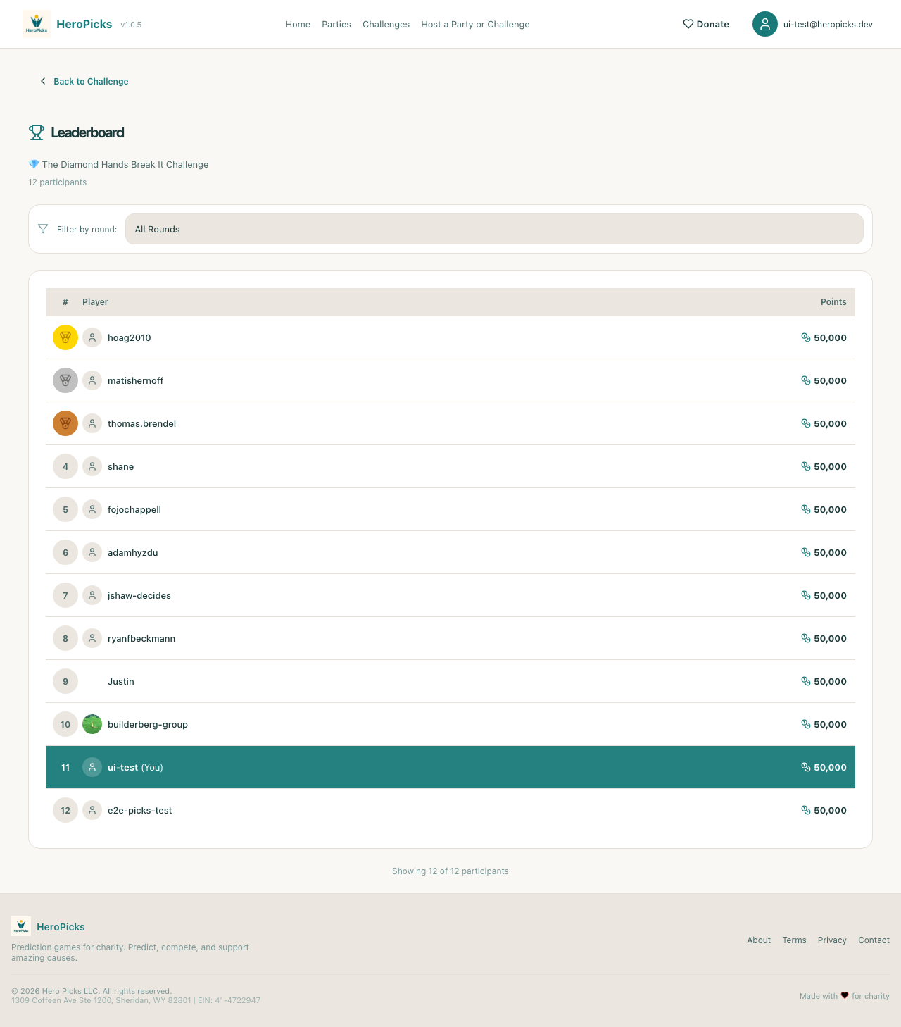 ✓User can view the leaderboard12 of 12 participants